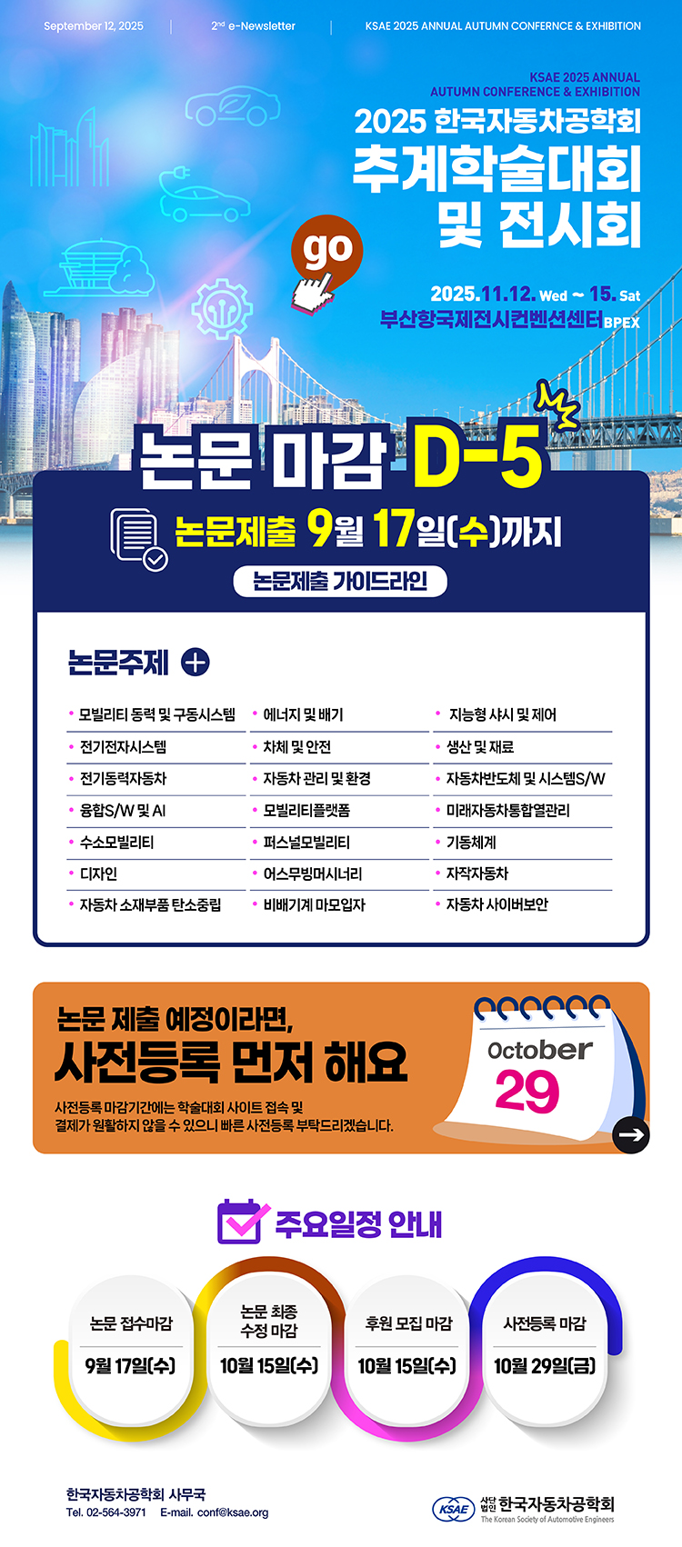 [KSAE] 2025 추계학술대회 및 전시회 - 논문 모집 안내 (D-5)