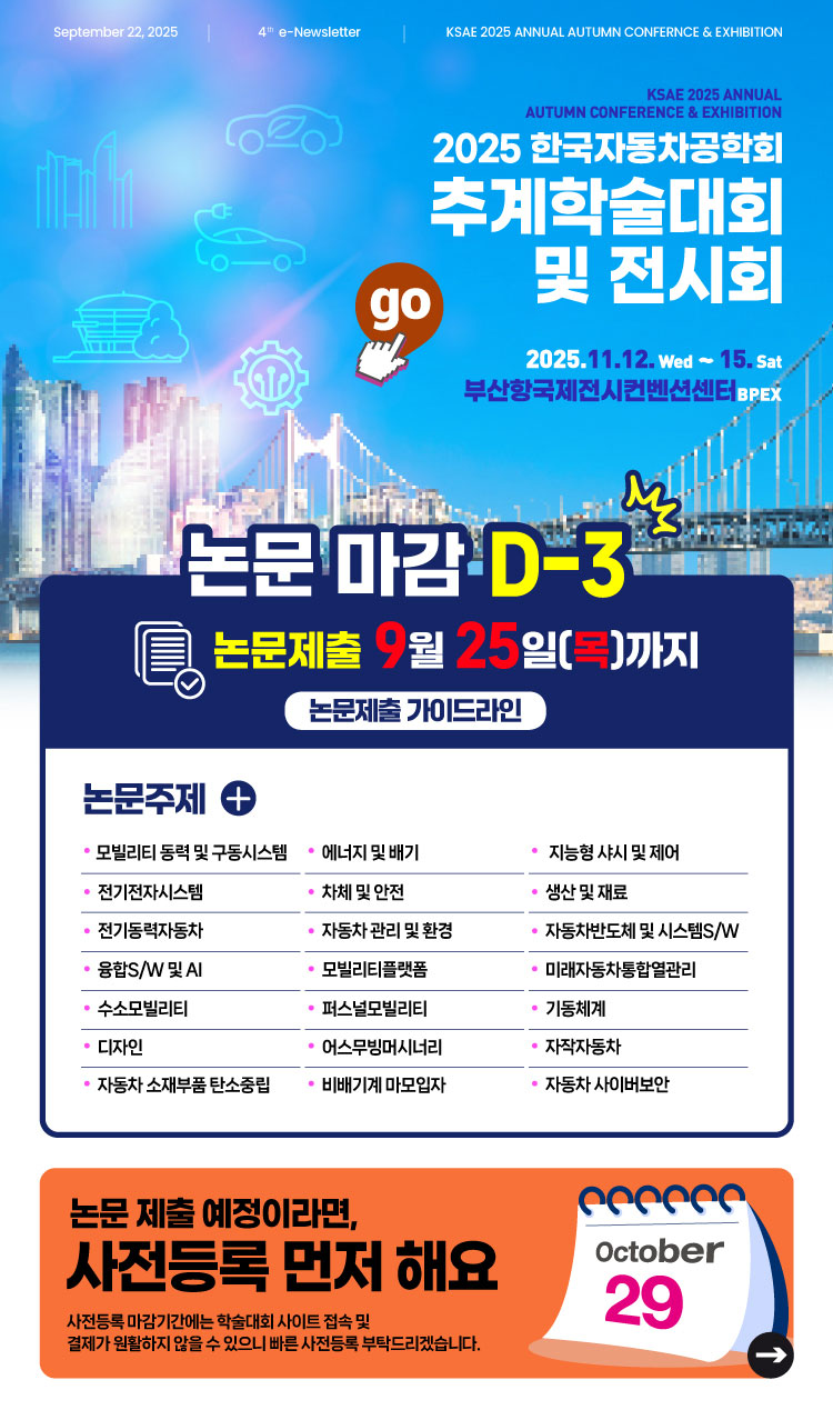 [KSAE] 2025 추계학술대회 및 전시회 논문 모집 안내 (D-3)