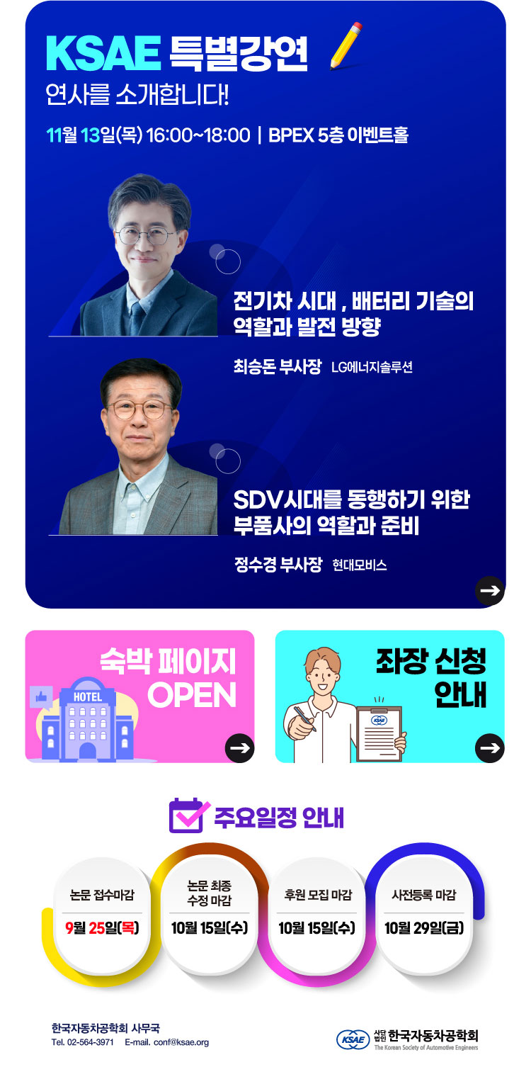 공지사항 [KSAE] 2025 추계학술대회 및 전시회 학술대회 개최 안내(D-7) 새글 2025-11-05