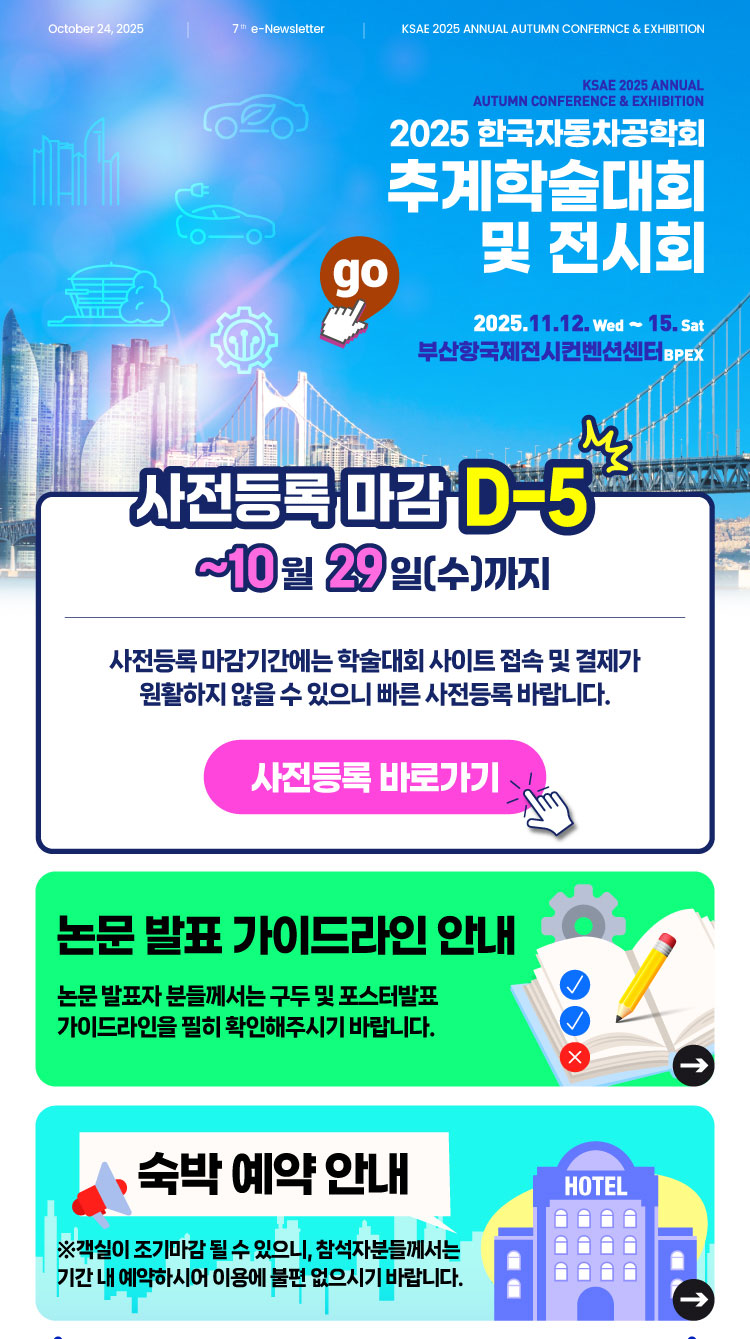 | [KSAE] 2025 추계학술대회 및 전시회 사전등록 안내 (D-5) | ||||||||